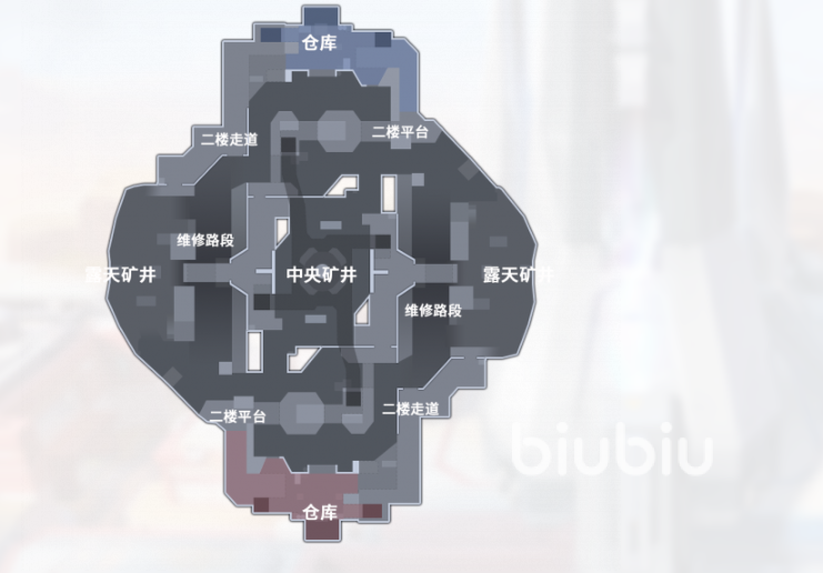 狄拉克矿区两段有着两个大仓库、中间地带是中央矿井,中央矿井的两边分别是维修地段,再往外是露天矿井,具体的分布大家可以查看下图,这张地图目前只有晶矿抢攻玩法,该玩法娱乐性质会比较强。