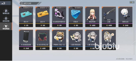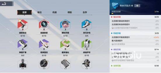 除了排位商店之外,玩家还能通过特别行动的活动获取到天赋点,该方法为主要的提升手段,或者在货币商城当中购买天赋,以此来提升自己的实力。天赋系统在玩家12级之后开启,玩家可以自动解锁三个天赋点,天赋分为输出、机能、续航、生存四项,可以在不同方向为玩家的实力强化提升助力。