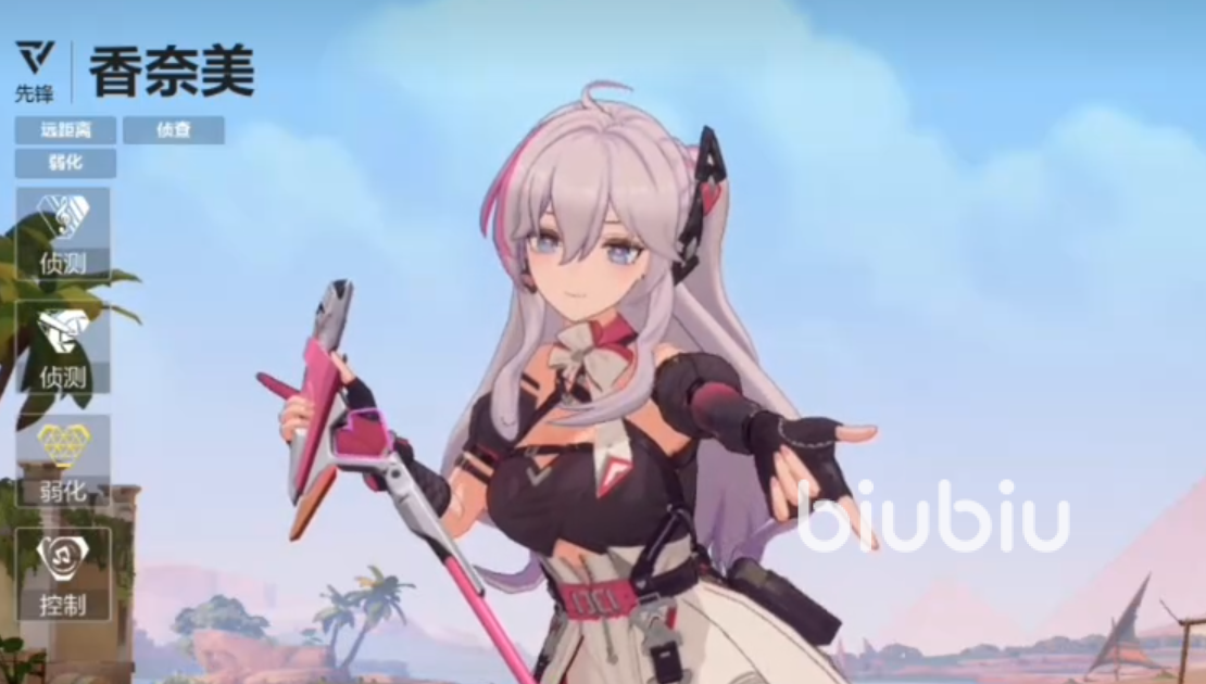 香奈美属于先锋,拥有透视,给敌方减少移速等能力,适合刺探敌方情报,她的被动会让主武器的子弹落点产生音波区,让里面的敌人被透视给自己,她的主动技会发射声呐片生成探测区域,让历练的敌人被透视,她的战术技会丢出音响,对进入其中的敌人造成减速,大招会播放音乐,处于其中的敌人会被减速,丢失准星、降低射速和眩晕。