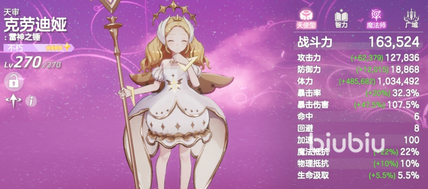 该角色核心机制围绕“增益层数”进行,自身如果累积获得6层增益,就可通过“圆斩”这个招式强制触发100%暴击,并将对手身上4层增益效果清除,额外给敌人添加眩晕;大招同样拥有暴击效果,还能固定恢复5000的魔法值,她就比较适宜在高协同性阵容中使用,也正是她的能力,让其不管是在队伍中,还是个人,都拥有很高的操作上限,战斗发挥威力强大。