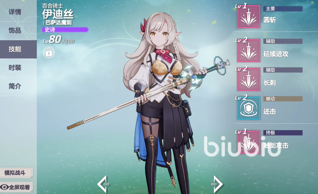 伊迪丝在游戏中的职业定位是斗士,技能组中除了基础的伤害技能外,还有着可以对敌方单位带来控制效果的技能,接下来我们就先了解一下伊迪丝妖精队的这名核心角色。她的主要技能是圆斩,这也是她的强力控制技能,使用后将以距离最近的敌人为目标,造成范围伤害,且伤害倍率为惊人的240%,所有受到伤害的敌人都会立马进入眩晕状态,效果持续三秒,当自身持有4-6个增益的时候,还能接触攻击目标拥有的2-4个增益buff,并一触发技能暴击