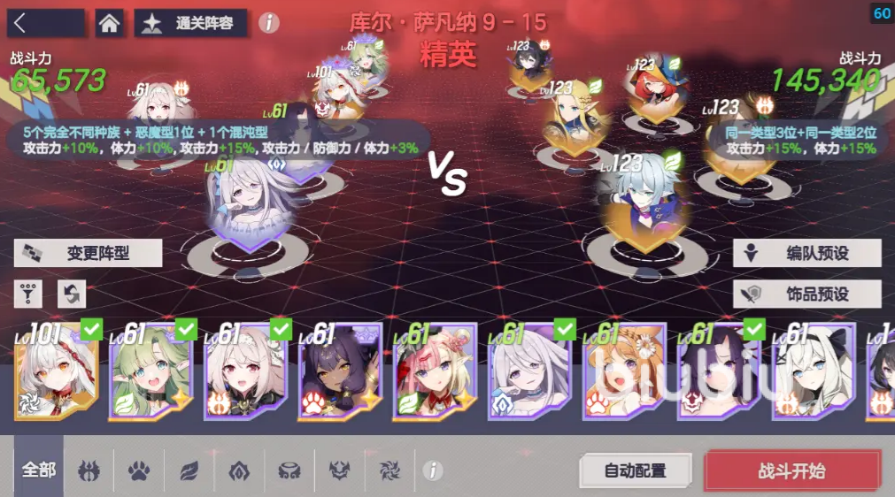 该游戏中,玩家去选择一个合适的阵容还是很重要的,比如选择卡莲前排扛伤,艾拉绕后收割,莉娅远程输出,成功开启7阵营羁绊,更是能让整体的队伍伤害大幅度提升,是玩家通过的核心所在,而打起源之塔这类的副本时,我们要注意层间属性克制的关系,比如混沌系怪可以去直接使用秩序精灵克制,深渊系则是优先上光明阵营即可。