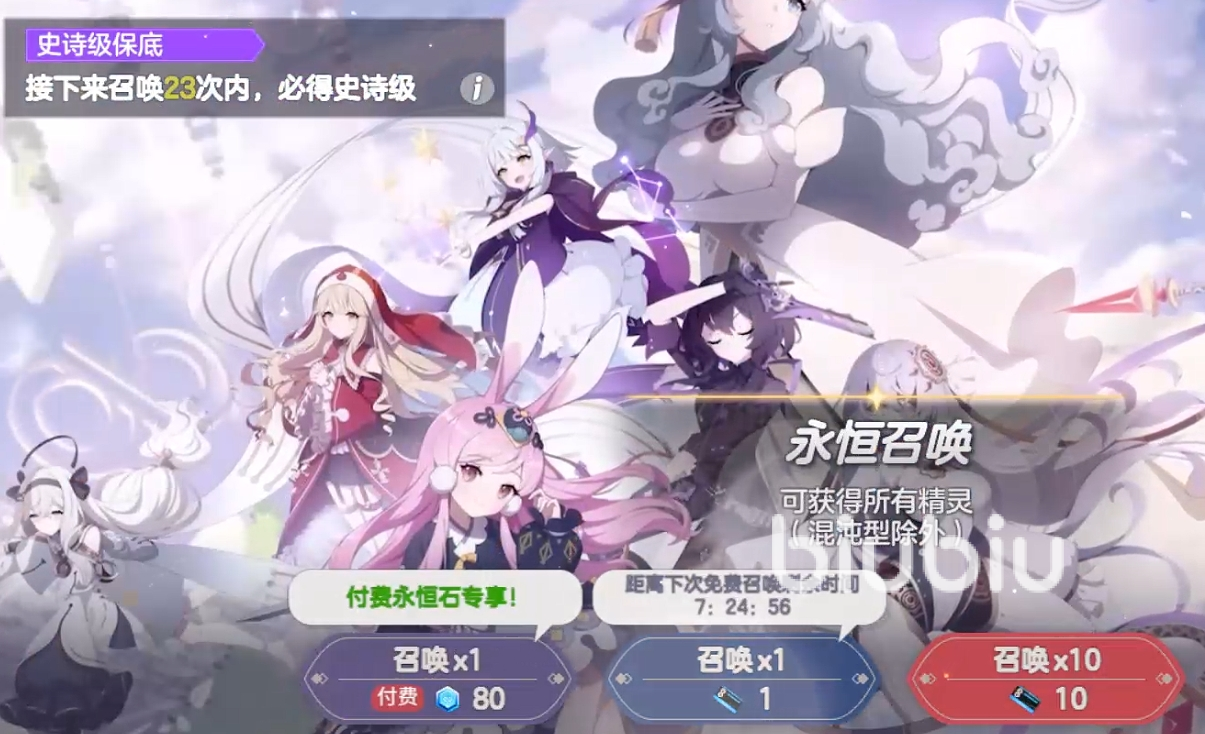 若使用【永恒石】抽卡,优先抽取炼金池和指定召唤池,抽取永恒召唤池所需的抽卡道具【永恒召唤券】很容易获得,且无法指定可获取的精灵,所以不建议用【永恒石】抽取。