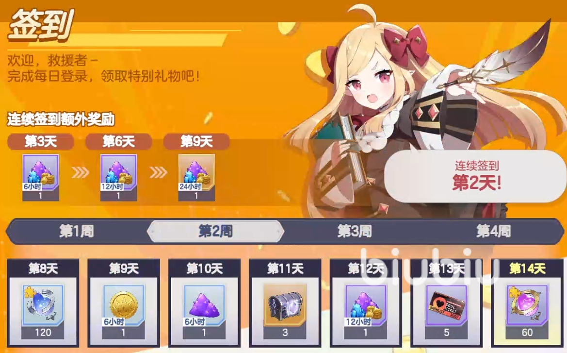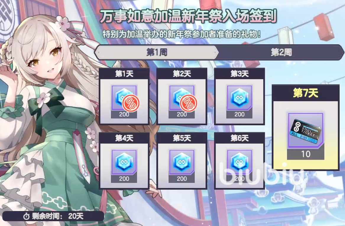 进入游戏后就能解锁签到功能,每日登录一次就能完成,可拿到很多不同类型的召唤券、养成资源,连续签到还能获得额外奖励。
