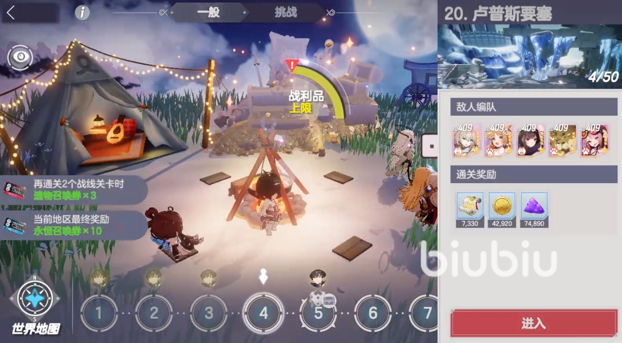 注:首日推荐将战线推进至5-35,挑战模式会在通过战线9-40后解锁。