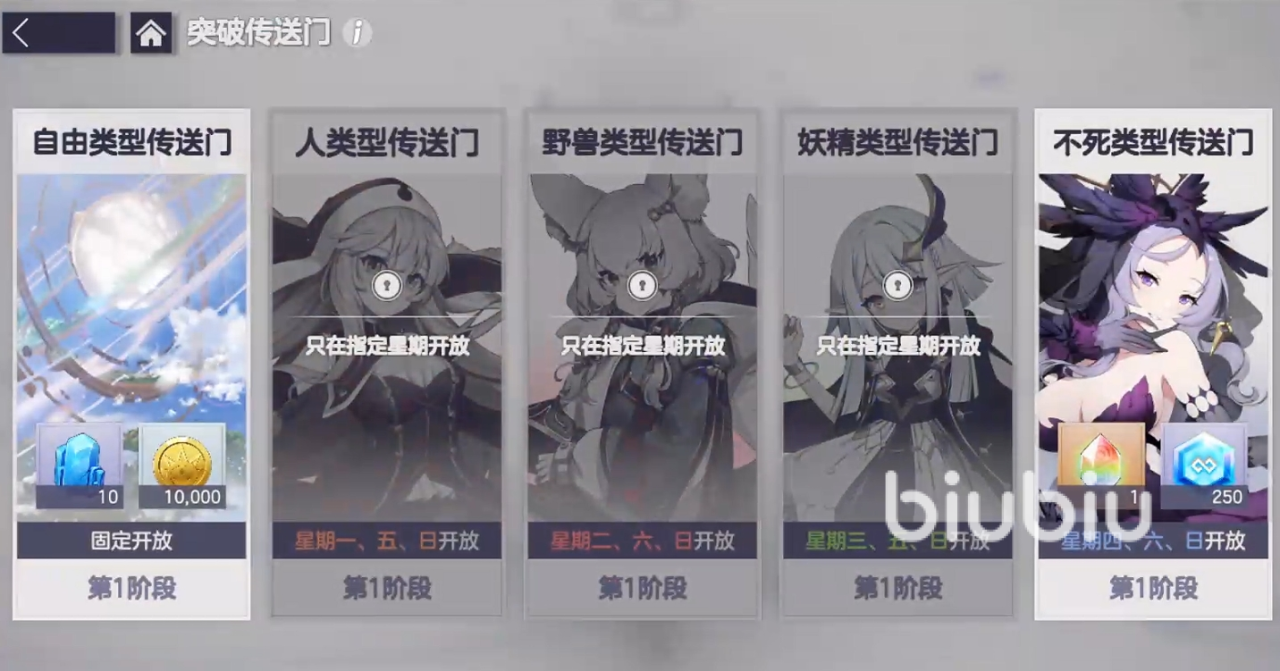 完成战线2-13后解锁,玩法类似爬塔,分为【自由类型传送门】和【特定类型传送门】,其中【自由类型传送门】全天候开放,【特定类型传送门】会在特定日子开放,可拿到【永恒石】、【太古遗物石】等奖励。
