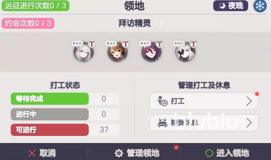 完成战线2-23解锁。可在领地里派遣精灵外出打工,能拿到不少养成资源、【领地币】,并有概率能获得可开出好感道具的【高级抽奖扭蛋】。此外,我们还可在领地里与选定的精灵【约会】,提升与该精灵的好感。