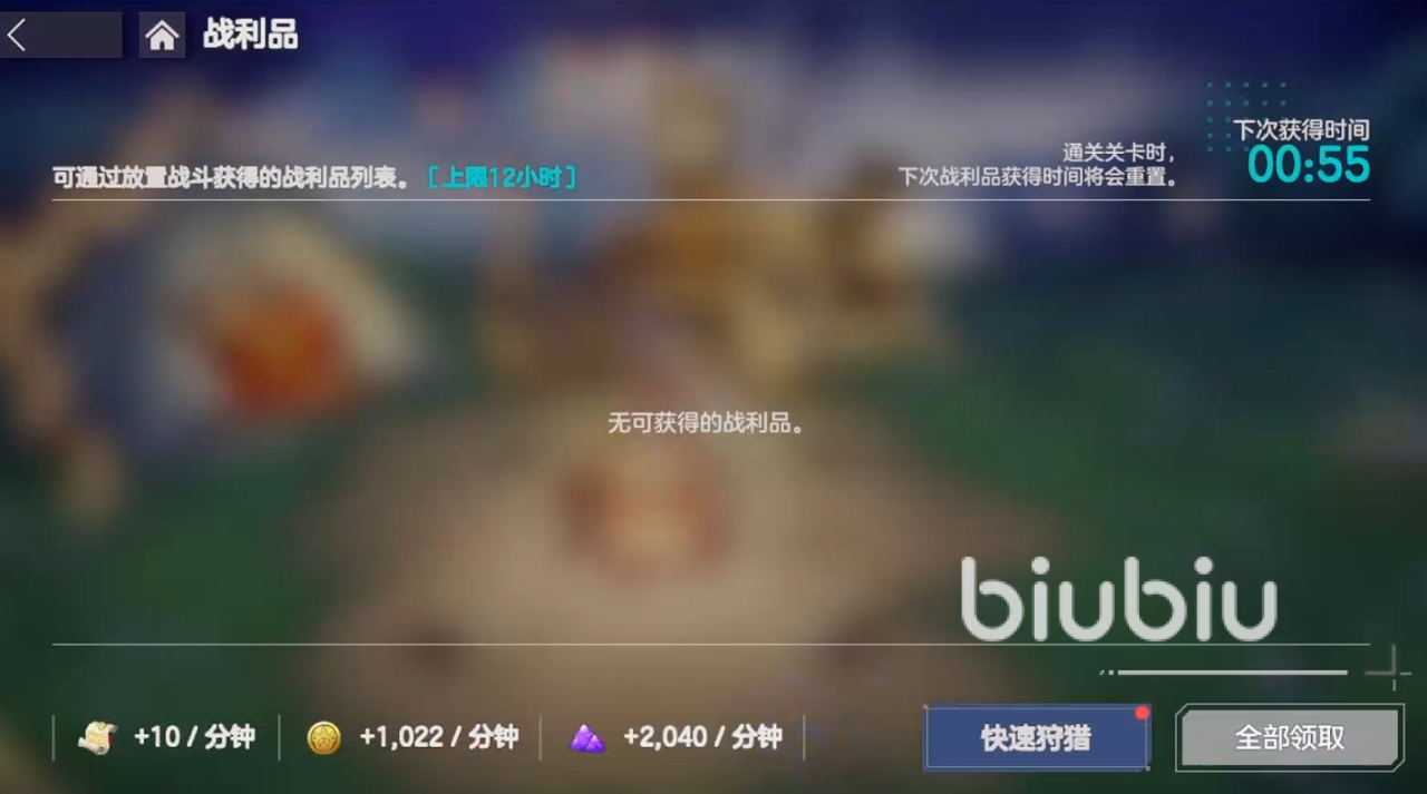 战利品功能与挂机玩法类似,且挂机收益与玩家在战线玩法中的推关进度直接挂钩,大部分基础资源都能在该功能中获取。