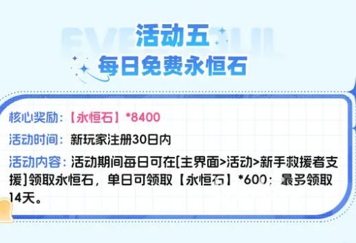 在首次踏入这个游戏的时候,资源加载完毕就可以获得惊喜,通过邮件可以直接领取到十张永恒召唤券,这可是新手前期抽卡的关键资源,能够帮助你快速组建起一支属于自己的精灵队伍,一同开启冒险之旅。新玩家在注册后的30日内,每天都会有一份免费的惊喜,只要在主界面的活动处找到新手救援,每天登录就能领取六百颗永恒石,这个福利可以领取14天,永恒石可在游戏中的用途很广泛,它可以用来购买珍贵的游戏道具,还能兑换各类召唤券,帮助你获得自己想要的精灵。