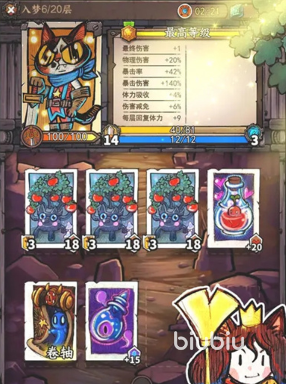 游戏玩法偏向pve,在挑战的时候每关都有对应的boss以及机制,而玩家就需要根据机制去使用特殊的卡牌,这些卡牌能直接重创boss的血量,而且还有很多的药水可以强化玩家们的战斗能力,还可以恢复部分的血量,使得玩家们的通关难度可以大幅度下降,而且中途的商店都是可以关顾一下的,说不定能购买到自己想要的卡牌哦!