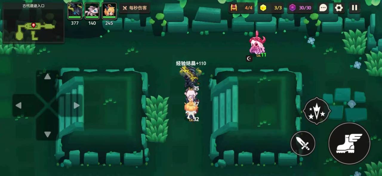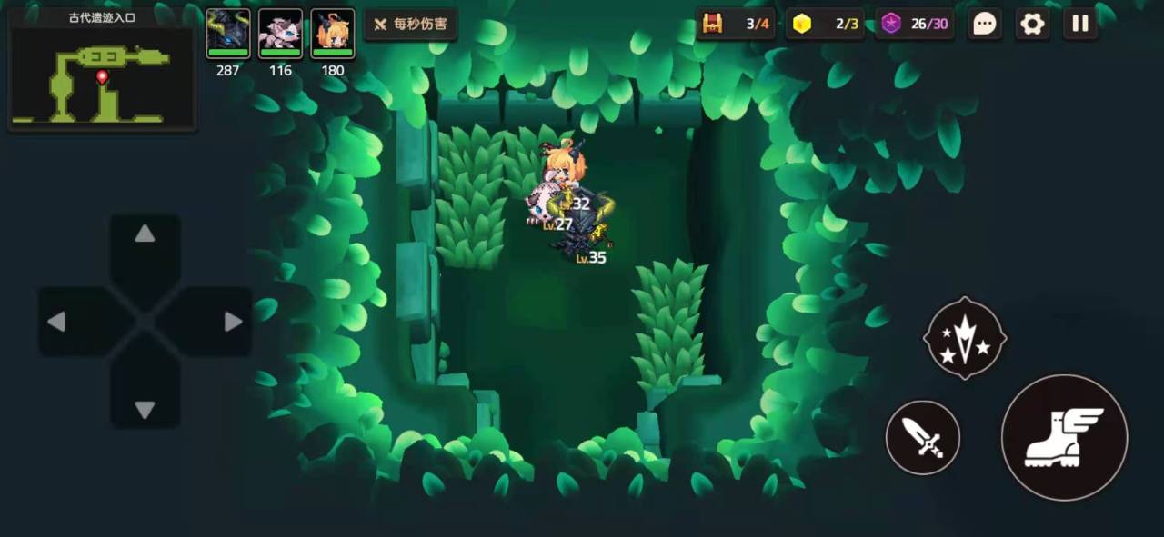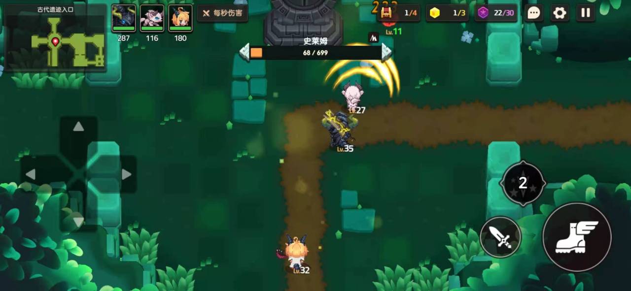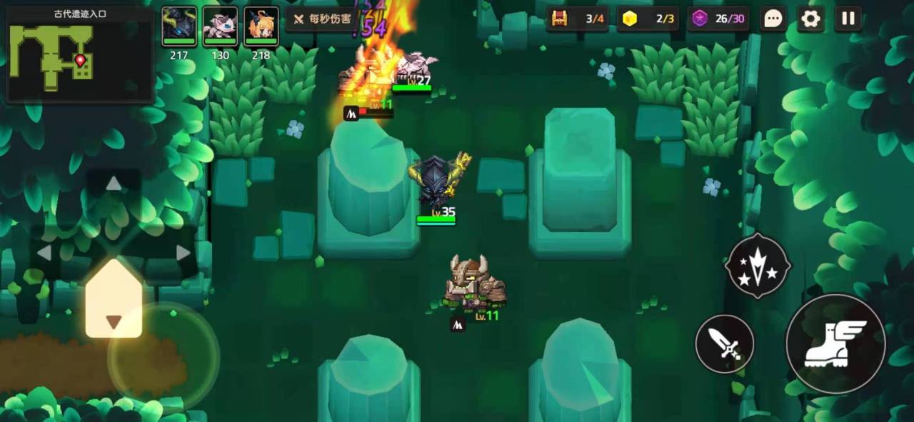 这个副本如果用光属性以及火属性的英雄来打的话,会有伤害加成,所以我们可以尽量选择这两种属性的英雄。进入游戏后,我们可以直接走上去,然后会碰到一个石碑,我们需要三块石板才可以领取对应的奖励,一个石板在右边的地图,我们可以走进去领取。