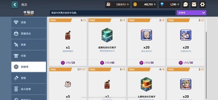 在游戏的商店中我们可以使用坎特币进行角色进化石的兑换,另外,游戏的裂痕副本也是有着进化石副本供大家挑战。这里大家需要注意的是,根据进化石角色的属性不同,游戏中分为了三种进化石副本,其玩法以及可以获得的进化石属性都不相同。