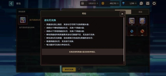 想要兑换1个英雄水晶的话需要消耗80个稀有英雄进化石或者40个传奇英雄进化石,如果数量不够的话是无法进行兑换的,另外,普通的英雄进化石也是无法进行兑换的。