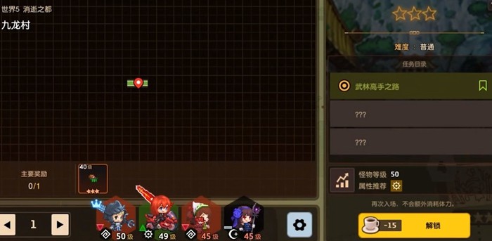 根据青叶任务的提示,第三本漫画书凯登传奇在世界5消逝之都里。我们来到世界5-5九龙村这张主线地图,进入地图后先往左走触发剧情,这里有两个坎特币收集一下,收集完之后往上走,用石块压住第一个地面开关,然后自己按下面三个就可以拿到星片了。