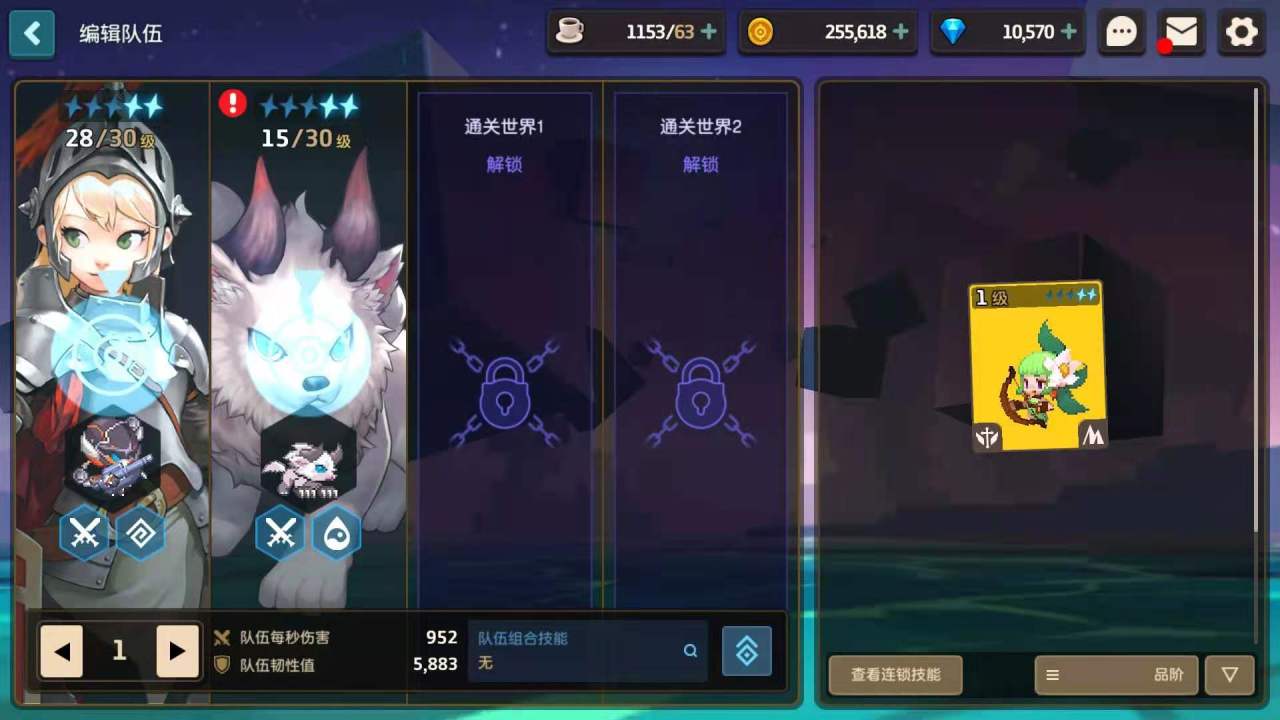 编辑队伍页面的左边是目前使用的阵容,右边是玩家已经获得的角色。