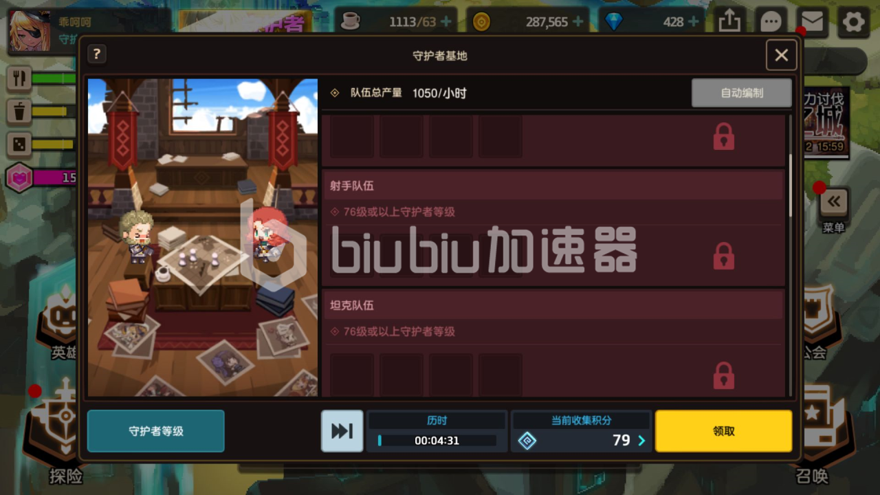 还可以通过调整队伍的形式进行提升积分产量,当调整成功后,即可改变积分产量。随着等级的不断提升,还可以开通多种队伍形式,通过增加英雄形成队伍,提升积分产量,快速提高守护者等级。
