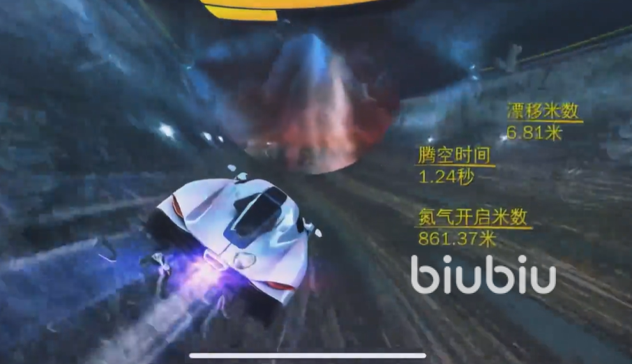 在初期的时候就会出现转弯的情况,而转过去的时候通道就开始往下了,接下来会有三道起跳点,这些点位可以加快玩家们的行驶速度,但是视觉方面会比较颠簸,基本上需要保持在赛车中间,这样就不会出现赛车冲出去的情况了。