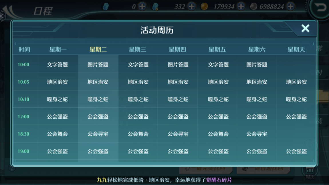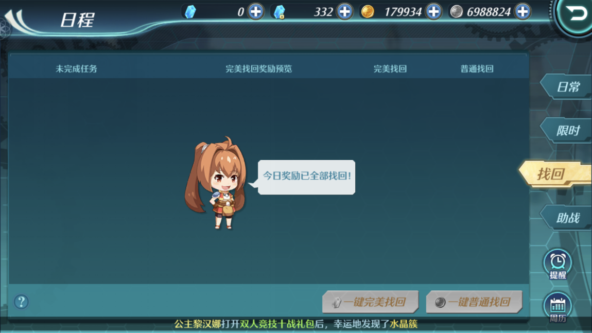 游戏中的日程是我们每日必看的项目。点击日程就可以看到我们当前能接取的所有任务。