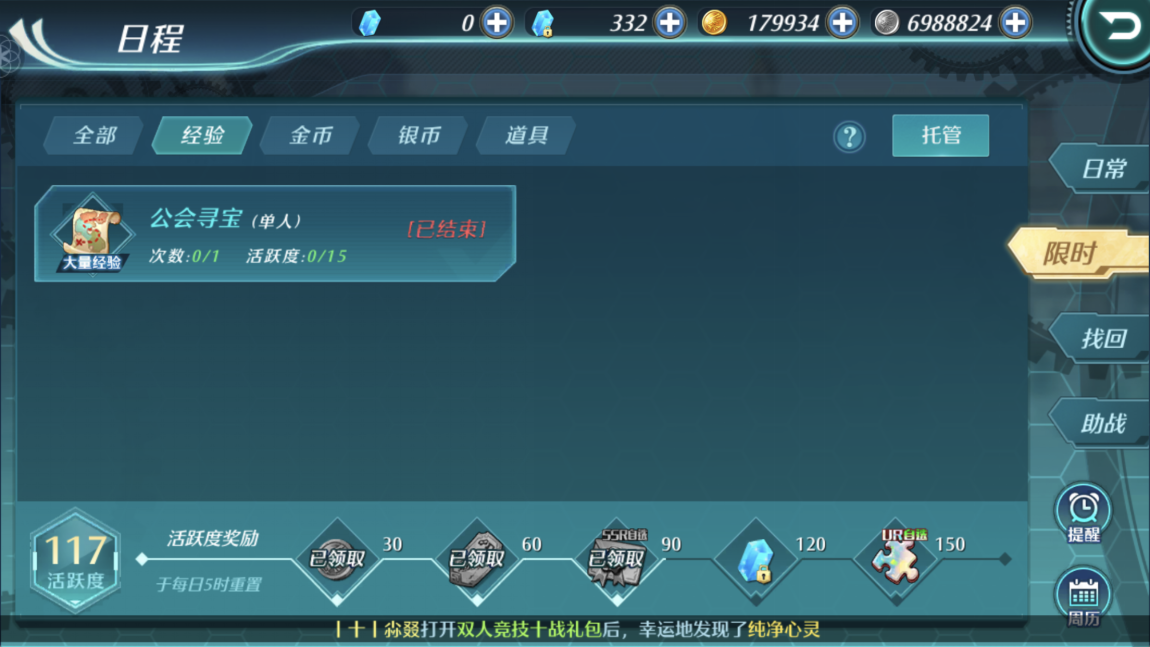 任务太多记不住任务的日期怎么办。我们可以在日程中查看每日限时任务。如果容易遗忘任务时间我们在日程界面中还可以设置提醒。避免我们错过高经验任务。