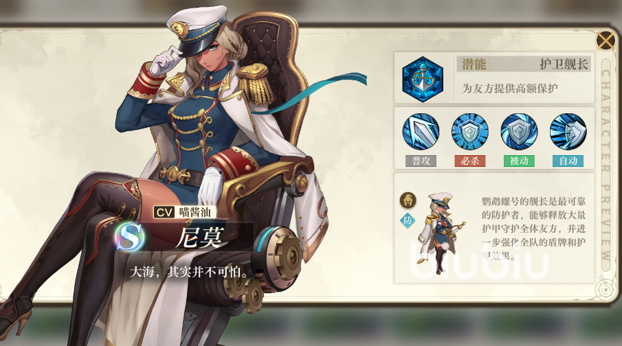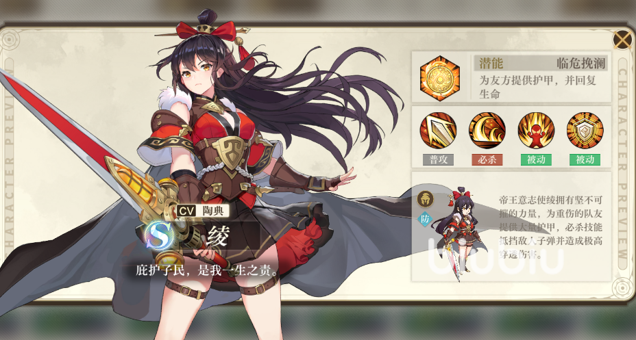 她与绫一样,也是一个防御,但又有些不同,比起绫来说,她的输出并没有那么高,但是她的防御却非常强,还可以抗暴,毕竟还能为队友提供盾牌与护甲并将这些进行强化,更好的抵御敌人的攻击。
