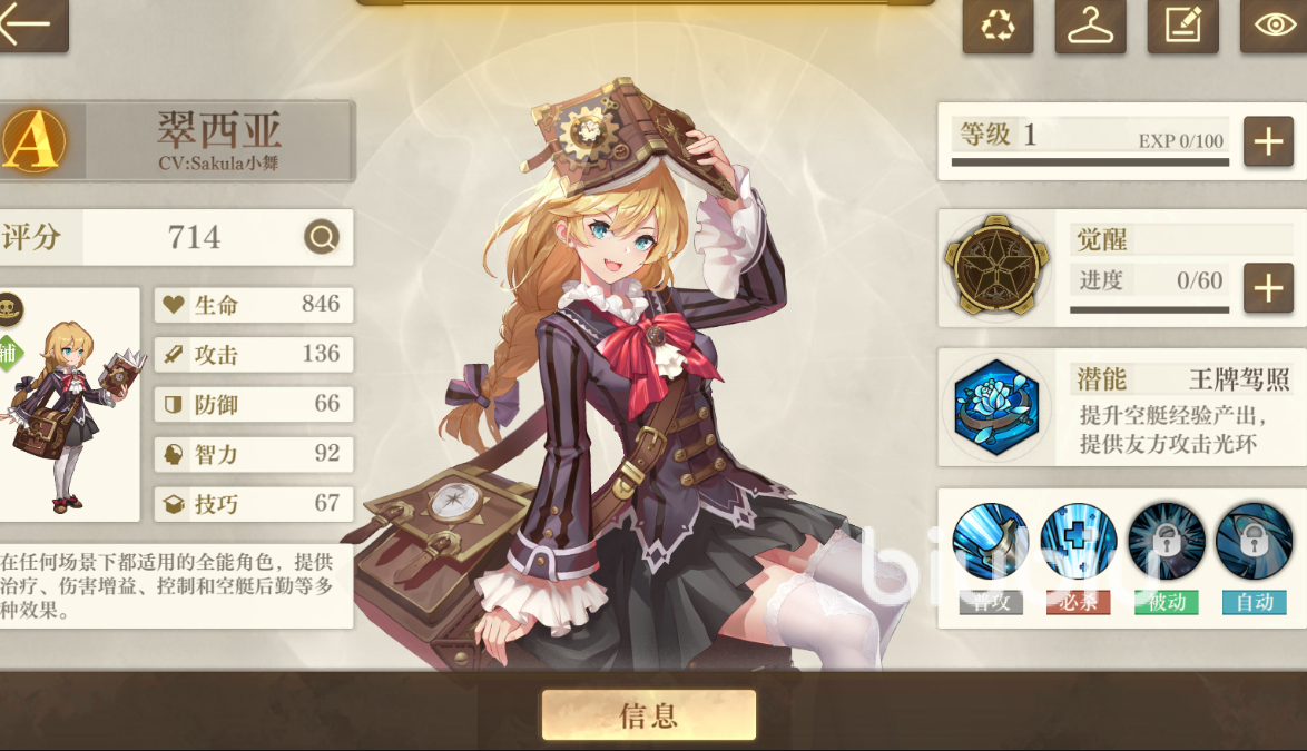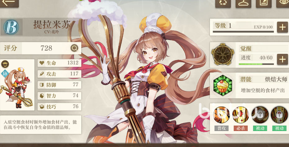 最后一个是提拉米苏,她是今天这个阵容里的防御,也是唯一一个B级的角色,而且她除了可以招募以外,通讯室也是可以拿到的,因为获取方式又多又简单,可以她反而可以比其他的角色提前觉醒,获得更强的战力。