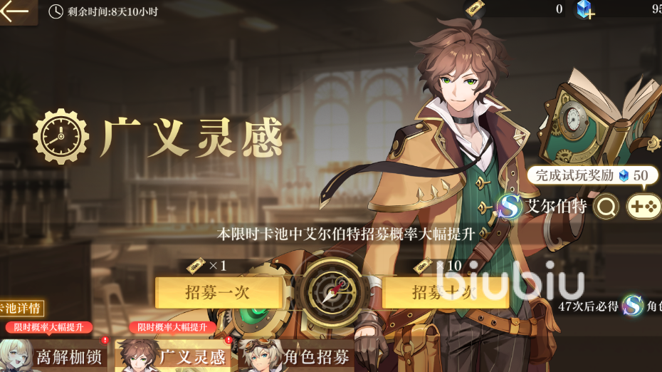如果是新手进入游戏的话,会有一些新手活动,可以通过任务来获取更多的招募券来召唤角色,建议大家选择同一个池子进行招募,因为游戏内有低保,且s卡角色比较难出,这样玩家就可以直接保底拿s卡。