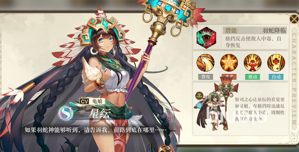 然后是碧萃丝,她可以对敌人造成控制,并且进行缴械,还能让对方的负面效果增强,接着是星纭,她可以造格挡时反击攻击目标,并使其中毒。