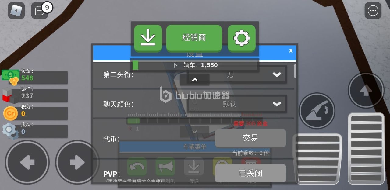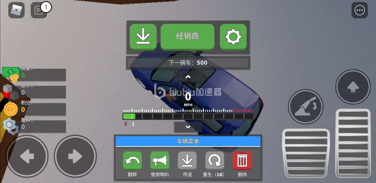 首先,我们进入汽车破坏机之后我们可以看到左侧有五个图标:代币、部件、积分、废料和资金,其中后四个(部件、积分、废料和资金)我们可以通过经销商来获得免费汽车,然后我们在地图中想尽一切办法来破坏这辆汽车就可以获得这四个东西了。