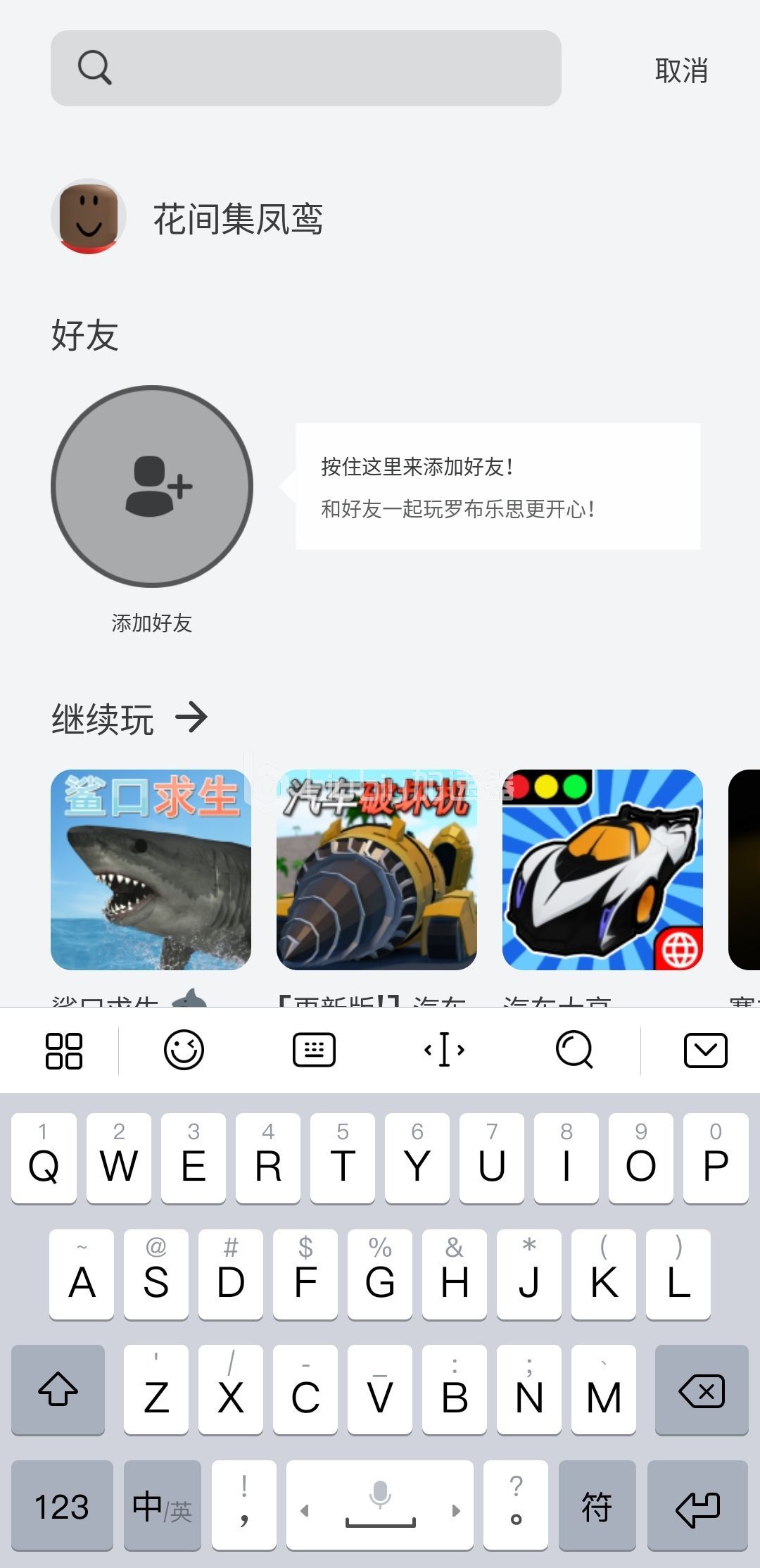 那么,当我们通过加速器进入罗布乐思界面之后,点击下方最左侧的房子按键,我们会跳转到整个罗布乐思游戏的主界面,这里有我们的基本信息、好友信息、历史游戏记录和游戏推荐,如果玩家们是没有玩过这个模式的话,我们就要通过专门搜索来进入这个模式。