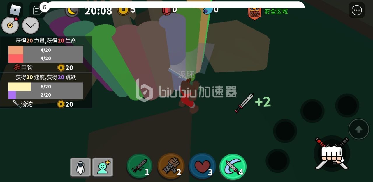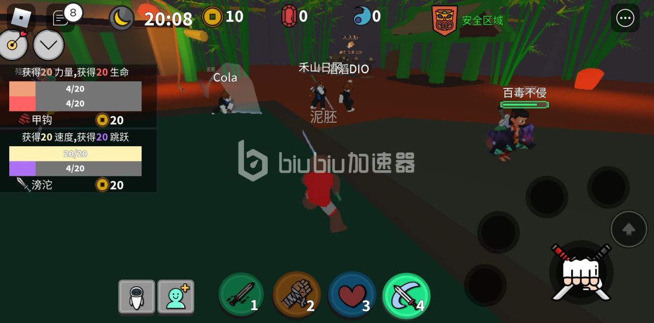 在游戏下方的选择栏中有很多的东西可以供给大家选择,如果我们选择第一个“剑”我们的剑修就会从背上取出长剑来进行攻击,如果我们选择第二个“拳”,我们的剑修就会收起武器通过搏击来战斗,如果我们选择最后一个“剑”带着残影的按键,我们就可以让剑在自己身边飞舞,然后操控他攻击其他玩家。