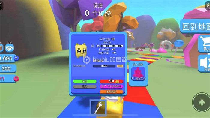 那么宠物孵化出需要挖五百个矿石,要升级的话也需要挖到指定数量的矿石才可以,数量多少可以再宠物面板查看。挖够以后点开背包,点击宠物,就可以看到进化按钮,点击它,就可以为宠物成功升级了。到后面,升级不仅需要挖到一定数量矿石,还需要指定的矿石才能升级,比如三块煤矿,等等。