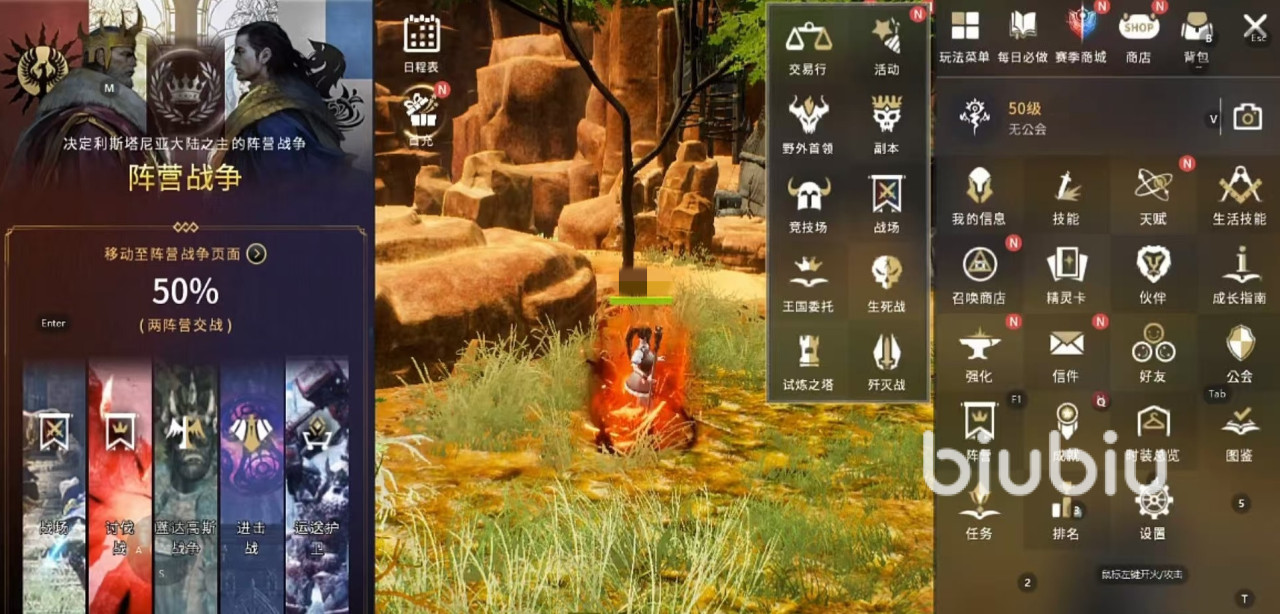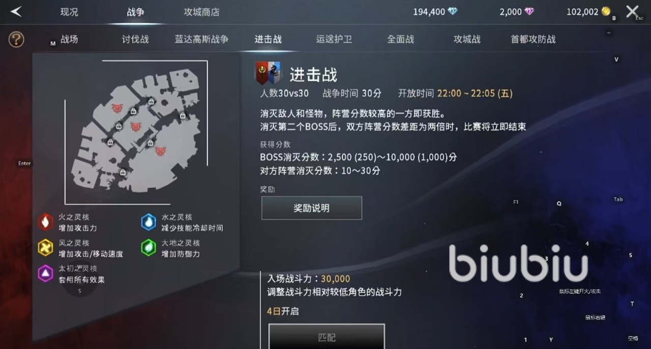 在具体机制方面,每周六10:00~10:05开启进入活动,持续30分钟。60名玩家被分为两个阵营,进行30对30的限时阵营战斗较量。获胜的条件是双方在指定战场中,消灭敌人和怪物,分数较高的一方就能获胜,如果在消灭第2个boss之后,双方阵营分数差距达到两倍以上,那么比赛将立即结束,分数多的一方直接获胜。该玩法的特点是场上的人数非常多,双方的实力差距固然会影响胜负,但是地图中的动态增益机制,让实力强的玩家阵营并不一定能笑到最后,弱势的一方如果能够合理利用增益,也可以实现瞬间翻盘。