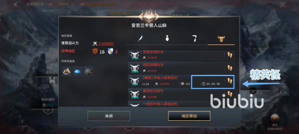 想知道精英怪可以再去点击最右侧的怪物图标,在这里能看到列表中的野怪首领、精英怪和普通野怪,并且通过列表信息还能知道与精英怪距离相差的距离,以及该敌人的具体战力,靠着这些信息大家能在战斗前做好充足的准备。