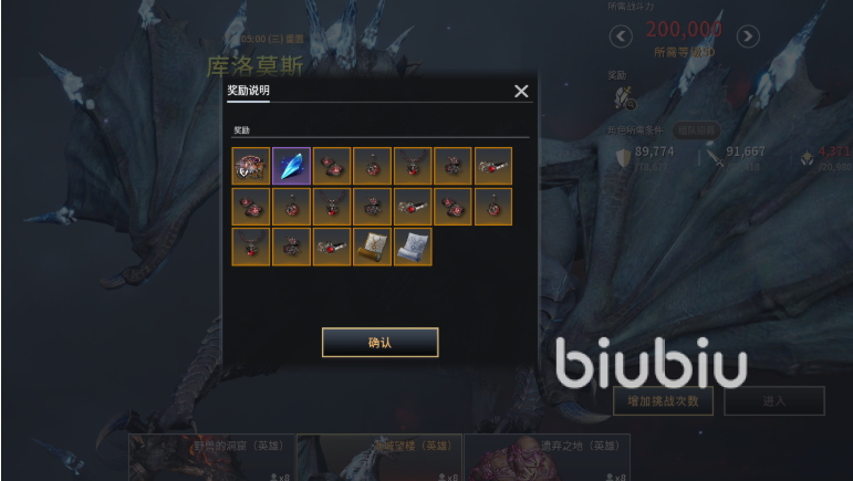 第三个精英副本,每周二四会重置,主要可获得高阶武器装备和首饰,强化石,设计图。第四个就是英雄副本,这个副本有特殊的准入机制,需要全员确认才能入场,一三五会刷新奖励;高阶首饰武器装备,强化石,古代币,设计图,神话精灵卡,都可在该副本中获取。