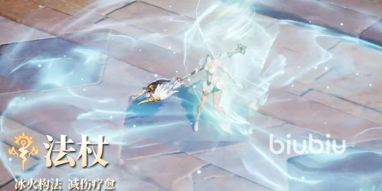 法杖可以用多种元素的魔法来展开攻击,有着强大的范围伤和控制能力,是团队的重要输出加控场手,他的“魔法防护罩”会对周围敌人造成输出,在限定时间内大幅减少自身所遭受的伤害,他的“火之刻印”会对敌军打出伤害,并给自己施加上增加攻击力的印记,他的“爆发”会在持续用攻击技时,慢慢增加伤害量,他的“落雷”会召唤出落雷对敌军造成输出,并使得敌人陷入到晕厥之中。