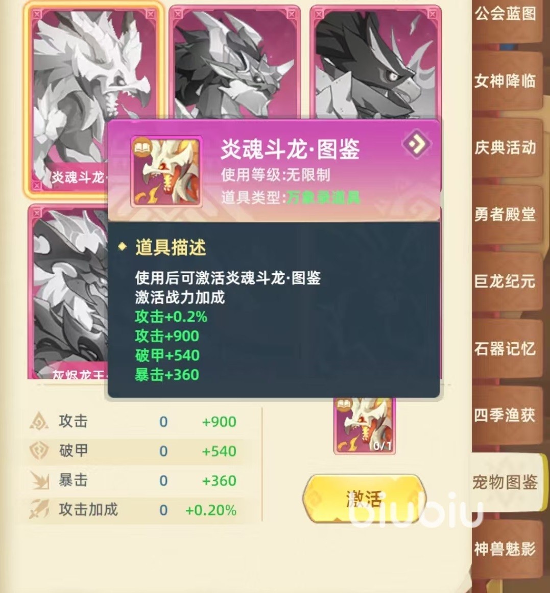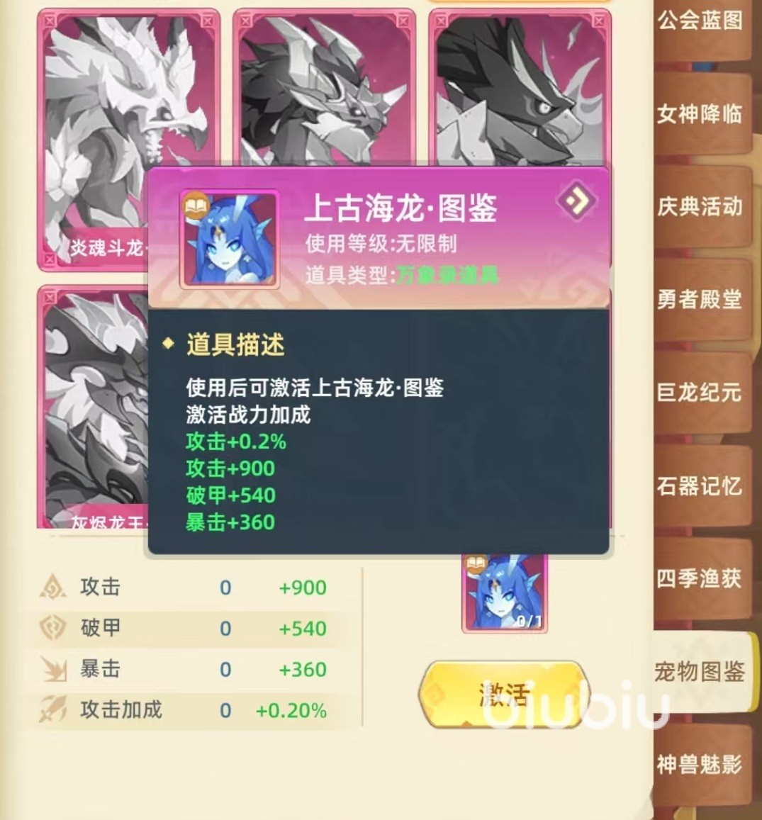 这套玩法通过叠加多层增伤效果,实现全员伤害翻倍,小编选择的这些宠物,还能触发额外光环,效果是所有出战伤害提升,所有出战宠物对怪物伤害提升,伤害目标大幅度增加,在很多需要群体输出的战斗中非常有效。大家知道阵容中除了幻梦圣女之外,其他的宠物是可以替换的,只要能够保证触发光环,上古海龙也可以换成月炎神龙。