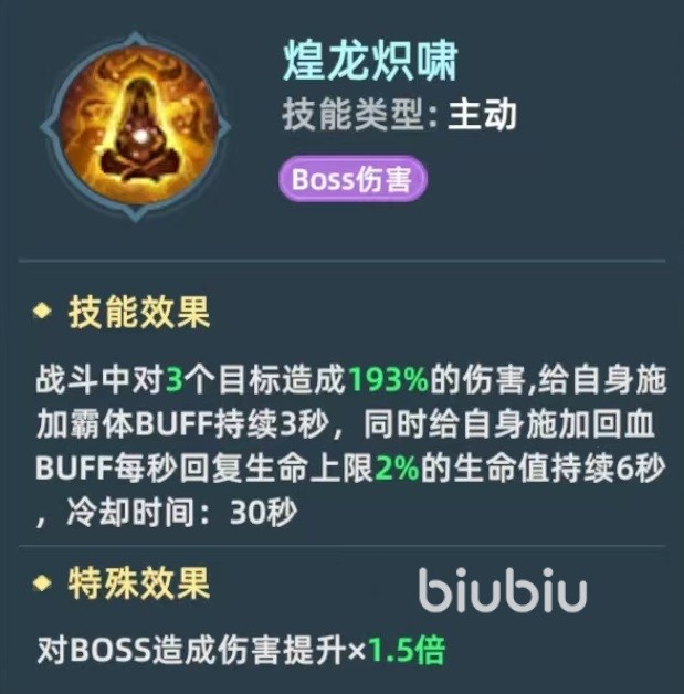 如果上面所说的这些宠物没有得到,也可以选择先和另外两个一起搭配,那就是火云战神和机甲暴龙。火云战神号称前期开荒神宠,等到禁域雪灵培养起来之后,就可以一起组合上阵了。火云战神有自己增伤的buff,对boss伤害很高,机甲暴龙可以为自身添加回血buff并附加霸体效果,这样的组合在打boss输出时也非常犀利。