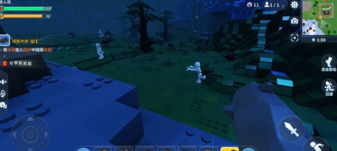 身为沙盒类游戏自然有生存模式,在乐高无限中玩家会进入一个生成的世界。和MC不同的是,玩家开局就会有一个立足之地,并且在出生点周围有很多矿产资源以及生活必备的食物水源,这在众多的沙盒类手游中已经是容易的了。
