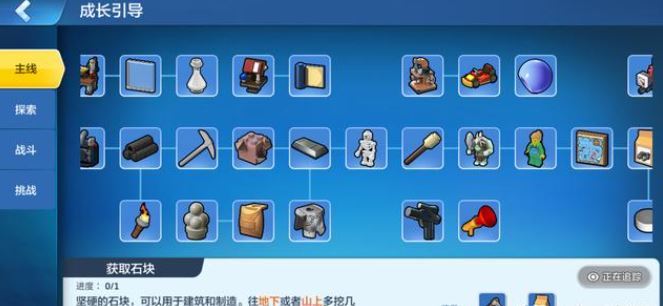 接下来就需要继续跟随现阶段的新手任务进行成长,系统会让玩家对周围不同的资源进行采集,将自己的科技树提升以此变得更强大,与此同时开垦属于自己的农场来保证自身存活。