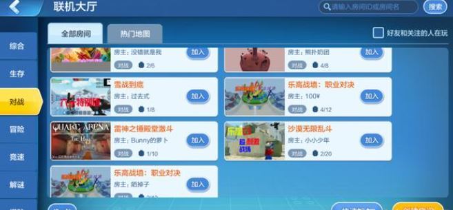 在游戏的联机大厅中,玩家也可以在分类里选择自己喜欢的玩法,各种高玩都有自己建造的地图,这些房间可以在下载中心进行下载,下载好之后可以邀请好友共同进行游戏。所以联机也是乐高无限的一大特色了,给玩家带来了新鲜的体验。