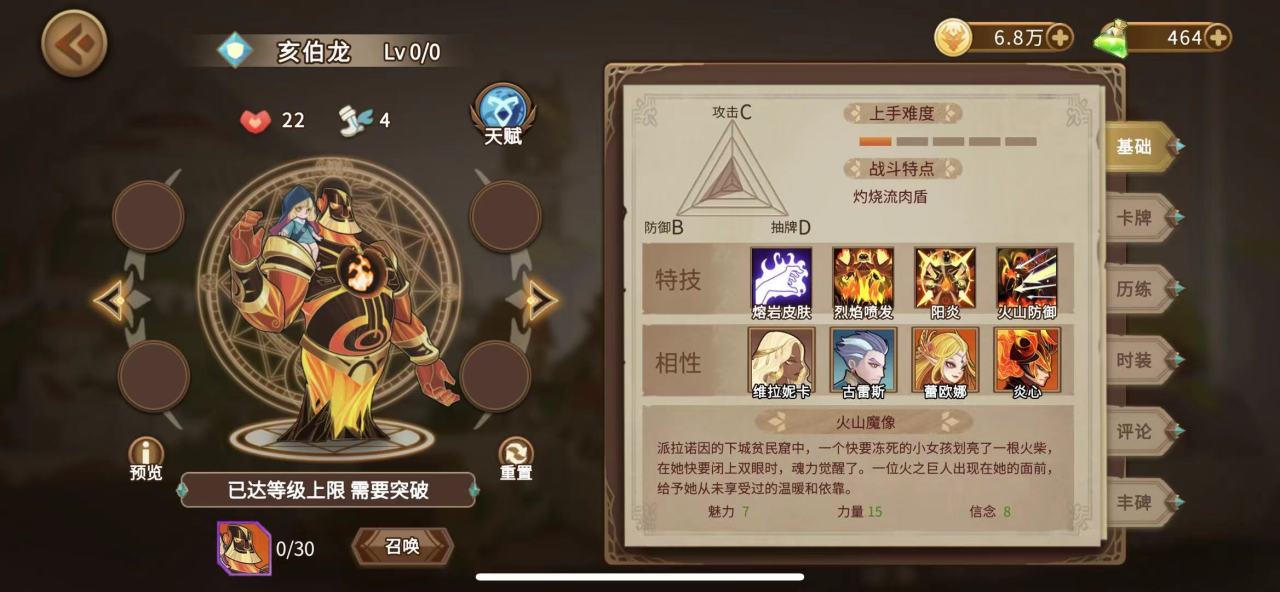 5、亥伯龙,紫色技能角色,作为火队肉盾,主要技能增加队伍火焰护甲,可以让攻击敌方受到伤害。