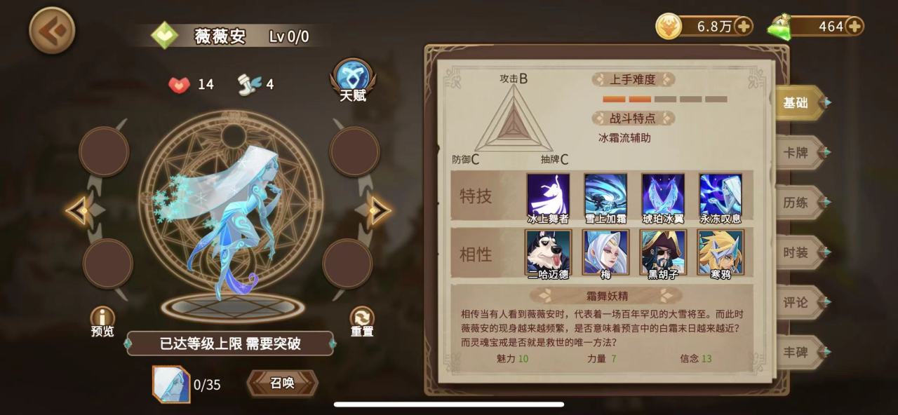 2、微微安,橙色级别角色,辅助英雄,主要技能是造成敌方冰霜效果。