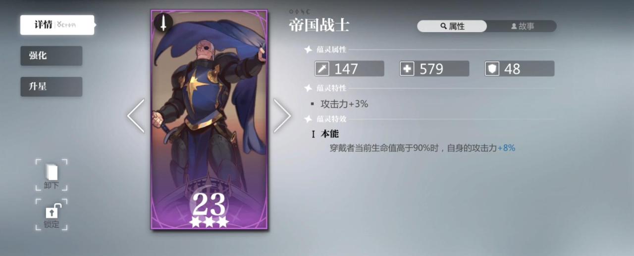 一些强力的蕴灵可以给我们的人偶带来巨大的属性加成,比如:帝国战士可以带来百分之八的攻击力效果增加,以及高血量增加攻击力等。因此,玩家们也要十分重视对蕴灵的培养。