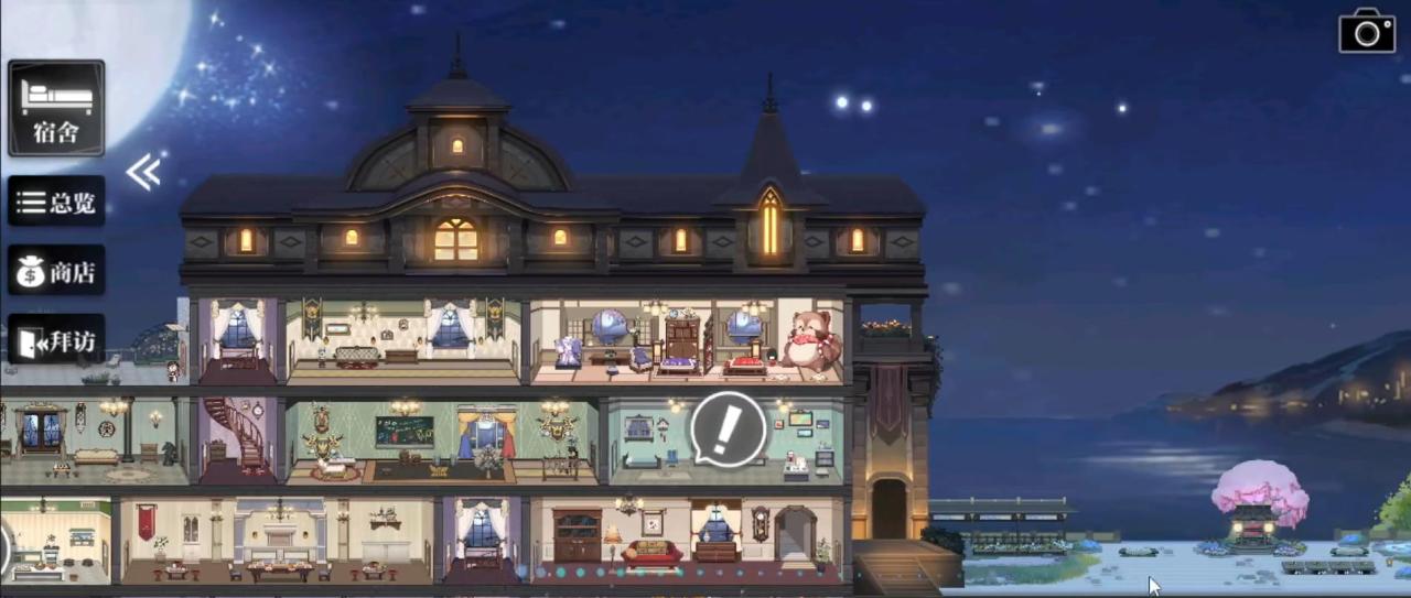玩家们在新手期的时候会解锁家园,家园是2D展示的方格,玩家们最开始只有一个房间,之后可以逐渐扩建让我们的人偶住进去,那么住进去之后会涉及到宿舍居住扩建和饮食的问题。