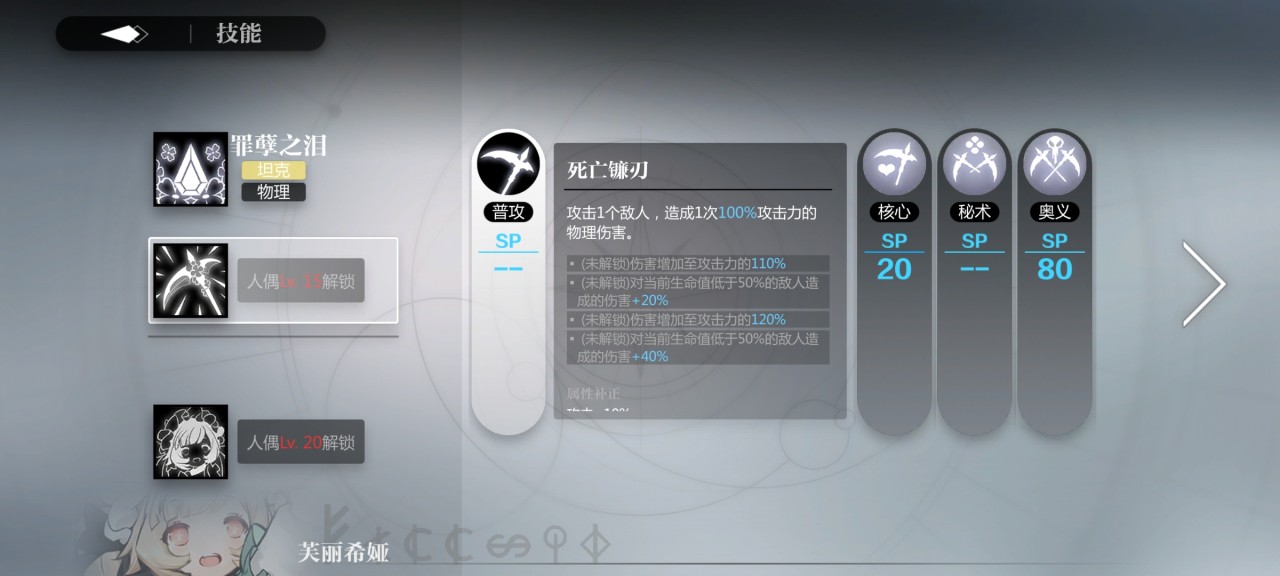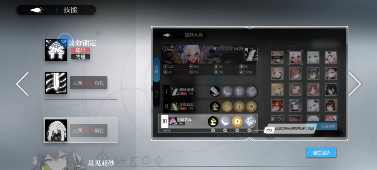 这个时候我们再进入正常的作战界面会发现我们调整的人偶技能切换成了我们刚刚选择的技能栏目。