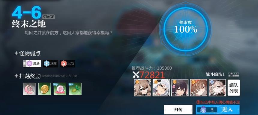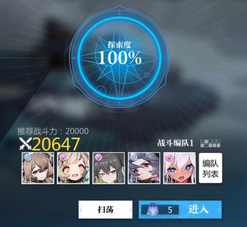 此外,扫荡的关卡需要100%的探索度,因为玩家们通关并不需要达到100%,有可能98%就可以通关进行一下个任务了,但是扫荡必须要求玩家把探索度打满。