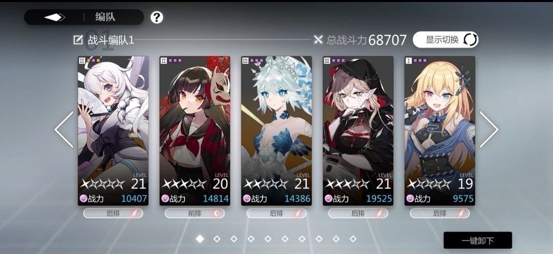 是个比较传统的初始编队,但在主线副本的前中期还是很有用的,具体阵容为:神纳木弁天(主T)+萨缇娅(辅助)+朔音真子(主C)+欧若拉(副C)+梦呋音月。