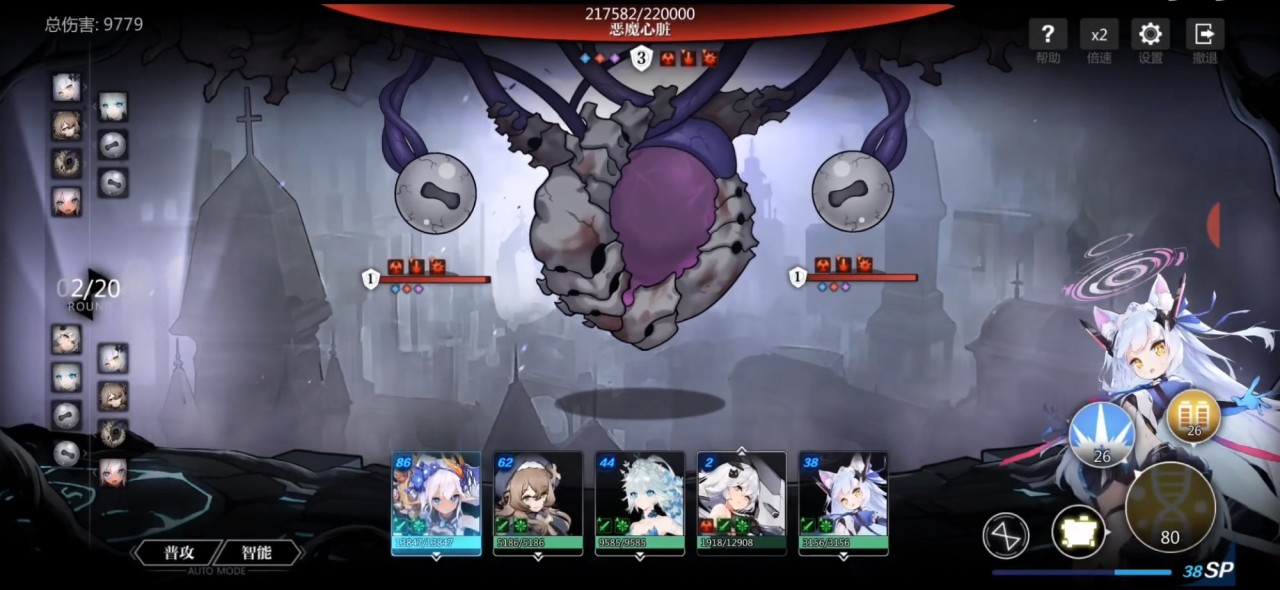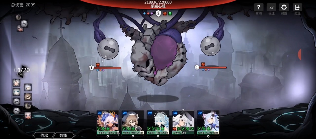 终焉冻土:随机攻击三次,对同一横排的敌人造成伤害,两次被连续攻击的目标会被冻结限制下一回行动。