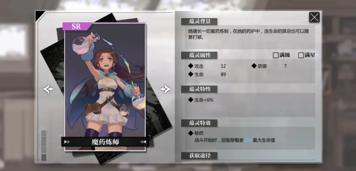 可以增加生命值并且在战斗开始时可以恢复穿戴者的最大生命值百分比血量,是一张续航非常有用的卡牌可以说是一些不想使用治疗角色可以携带的一张蕴灵,这样辅助角色就可以使用其他技能了,也是比较可以轻松的推图,比较推荐前排来携带的一张卡。