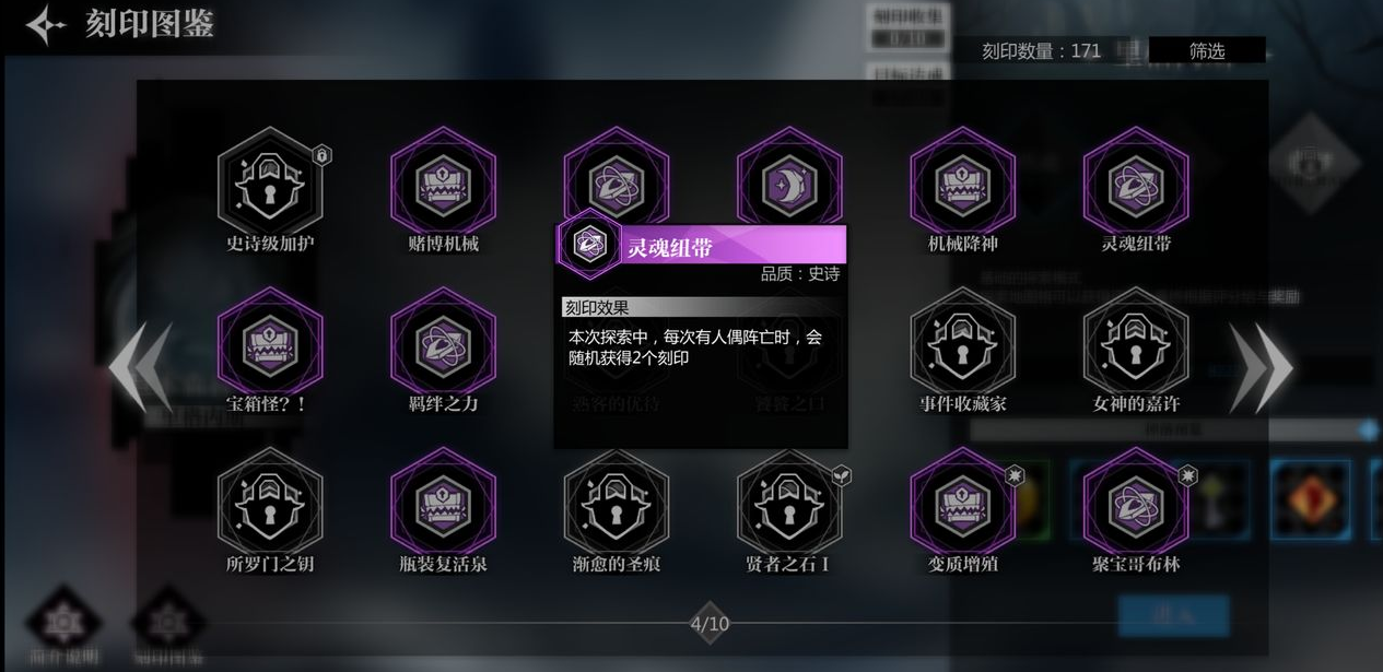 同时刻印还可以强化,每次强化需要消耗神圣结晶,强化后的刻印可以随机转变为一个史诗级刻印,带来的提升自然更高。